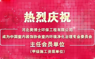熱烈慶祝河北美博士環(huán)保工程有限公司成為中國室內(nèi)裝飾協(xié)會室內(nèi)環(huán)境凈化治理專業(yè)委員會主任會員單位。