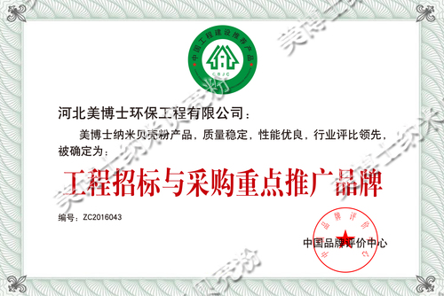 美博士納米貝殼粉產(chǎn)品以其穩(wěn)定的質(zhì)量,優(yōu)良的性能,在行業(yè)屏蔽中處于領(lǐng)先地位,所以被中國(guó)品牌評(píng)價(jià)中心確定為工程招標(biāo)與采購(gòu)重點(diǎn)推廣品牌。